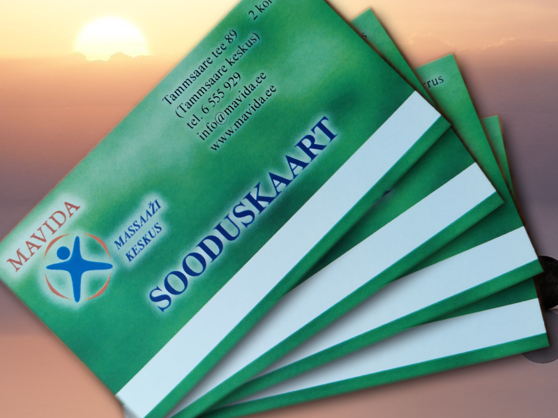 Pärast 10 seanssi saate sooduskaardi. Kehtib ainult peale registreerimist